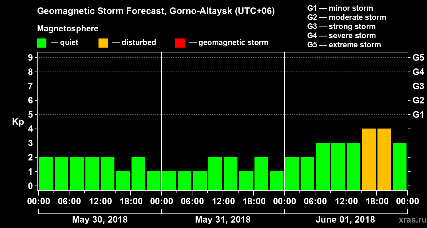 Geomagnetic storm forecast in Gorno-Altaysk for May 30, 2018