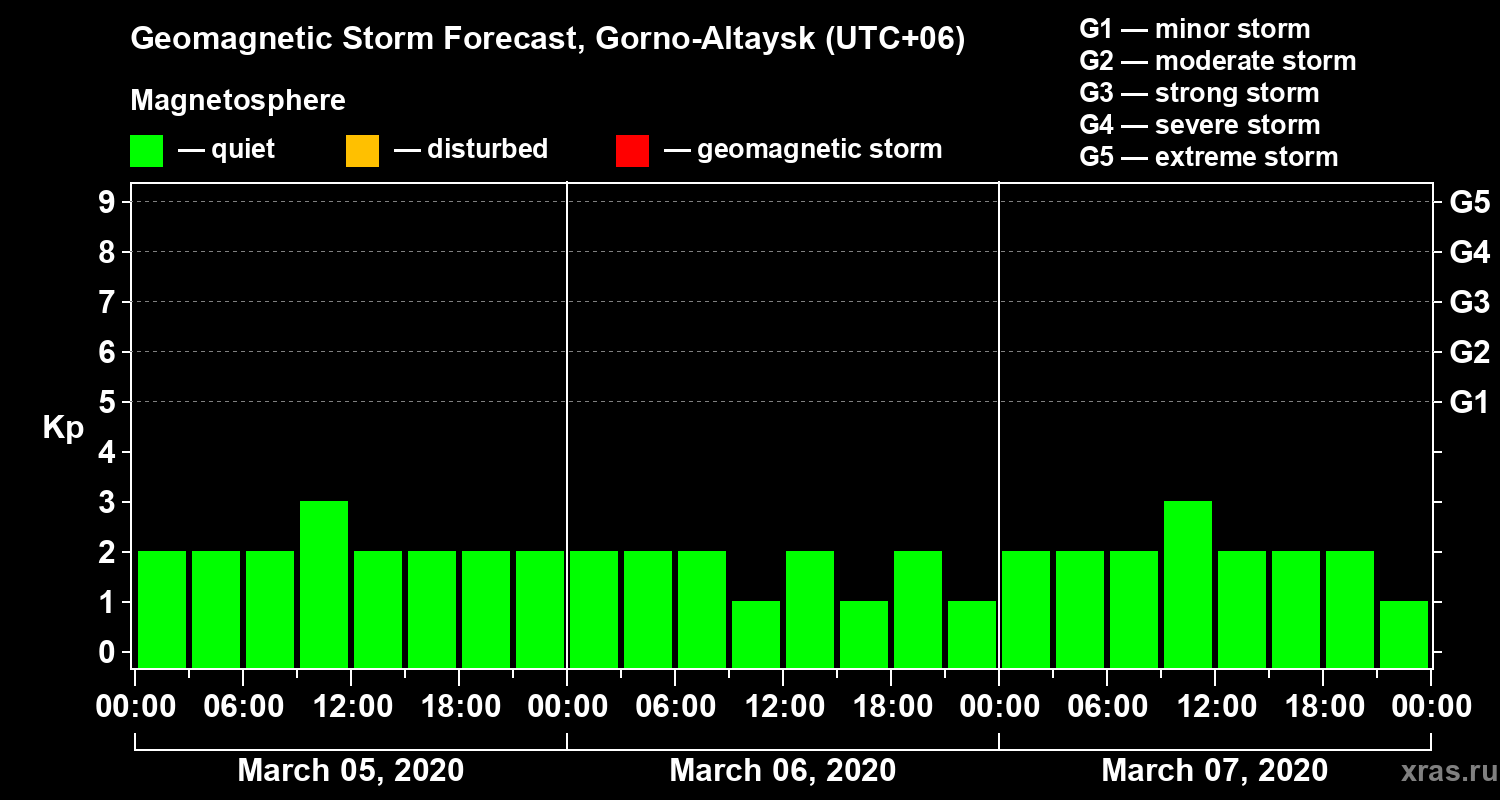 Geomagnetic storm forecast in Gorno-Altaysk for Mar 05, 2020