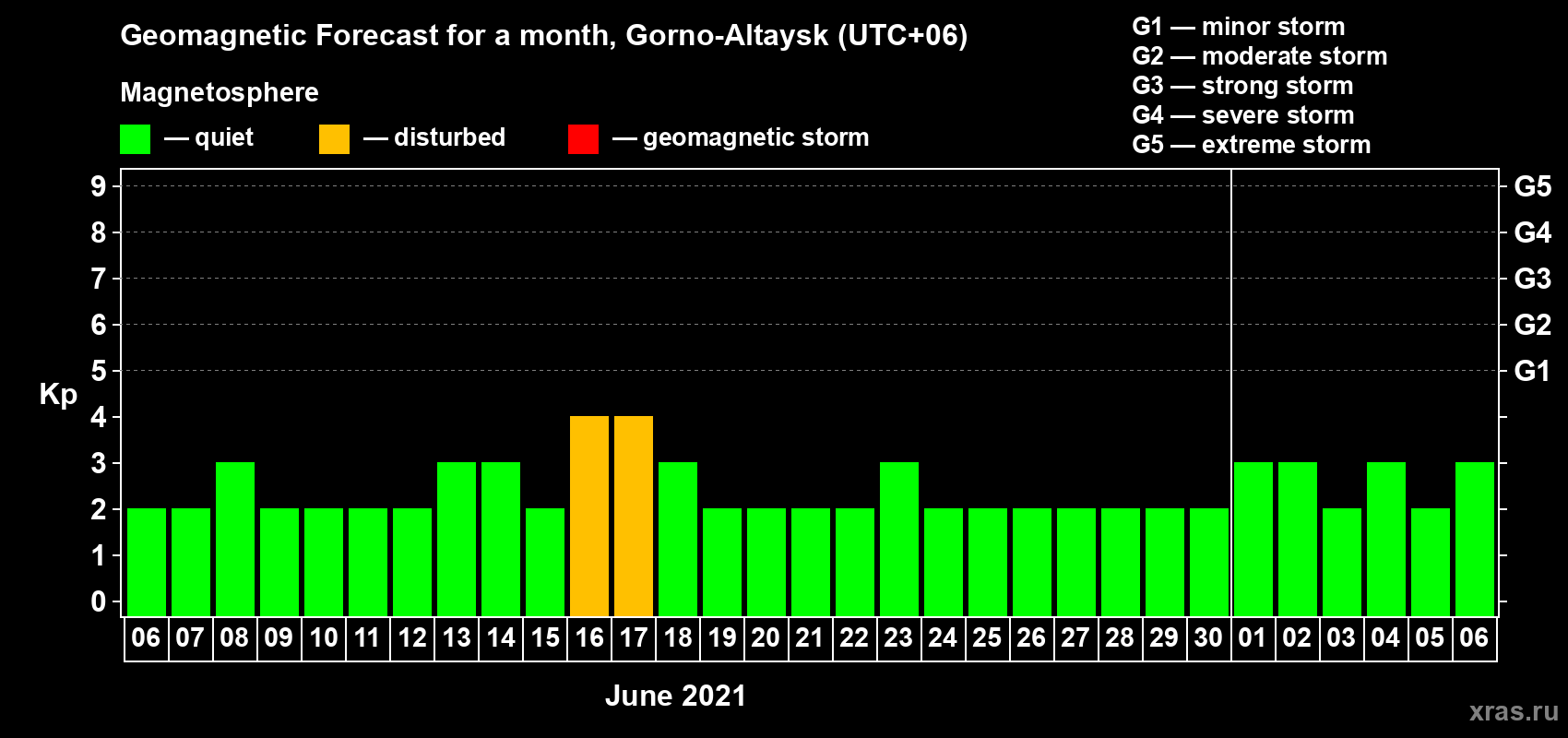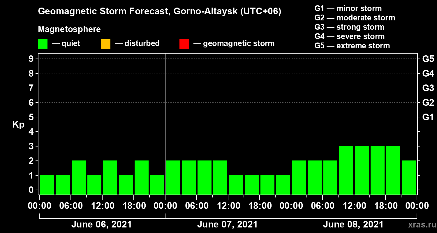 Geomagnetic activity forecast in Gorno-Altaysk — Jun 06, 2021