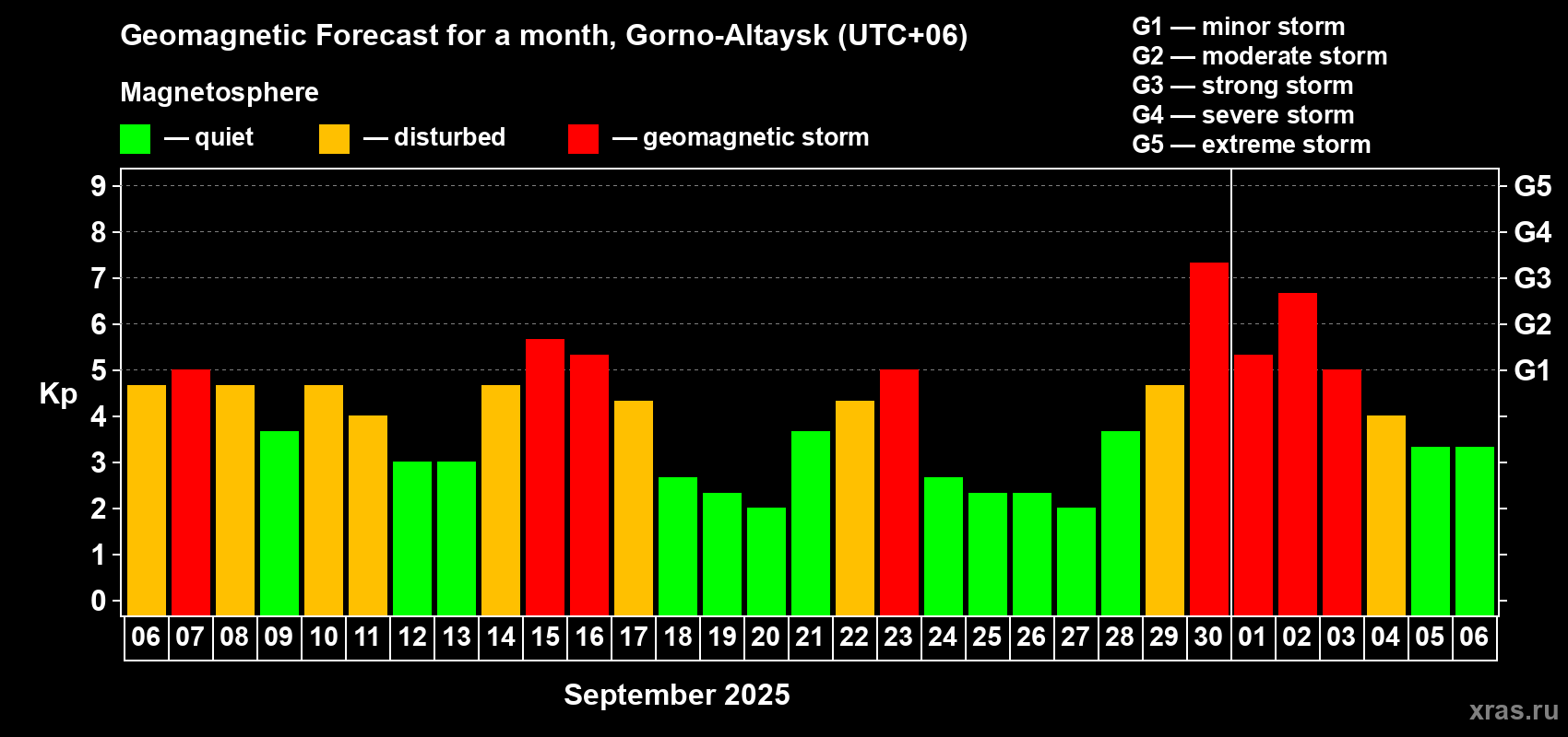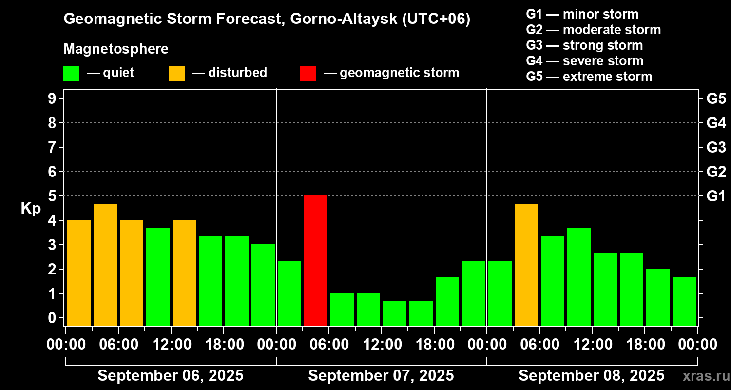 Geomagnetic storm forecast in Gorno-Altaysk for Sep 06, 2025