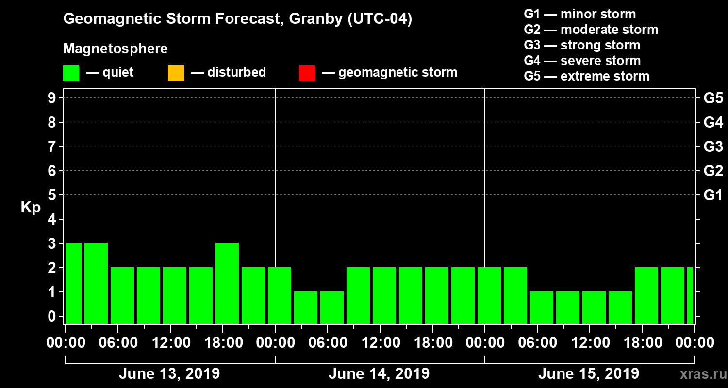 Geomagnetic storm forecast in Granby for Jun 13, 2019