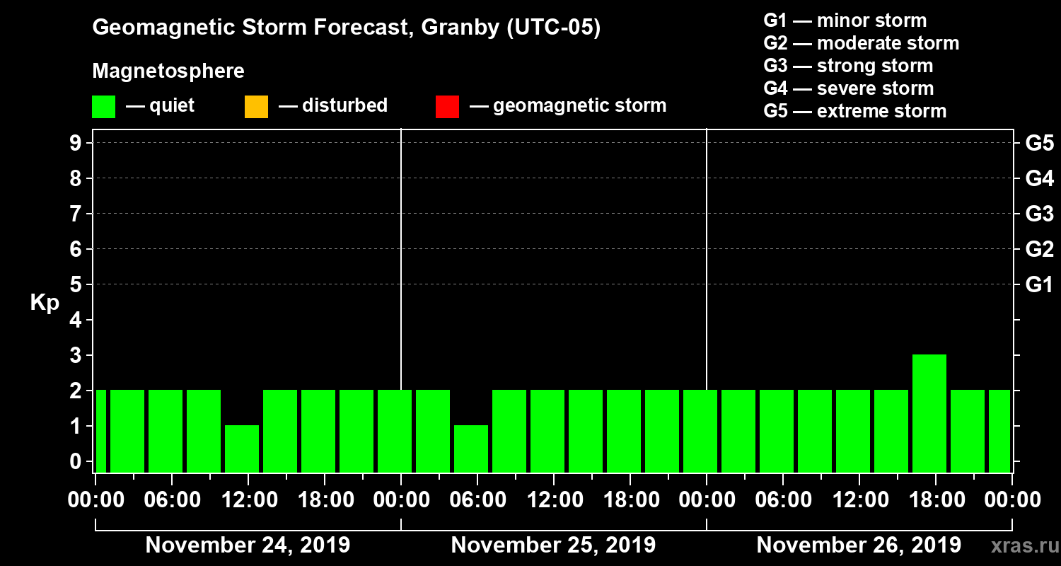 Geomagnetic storm forecast in Granby for Nov 24, 2019
