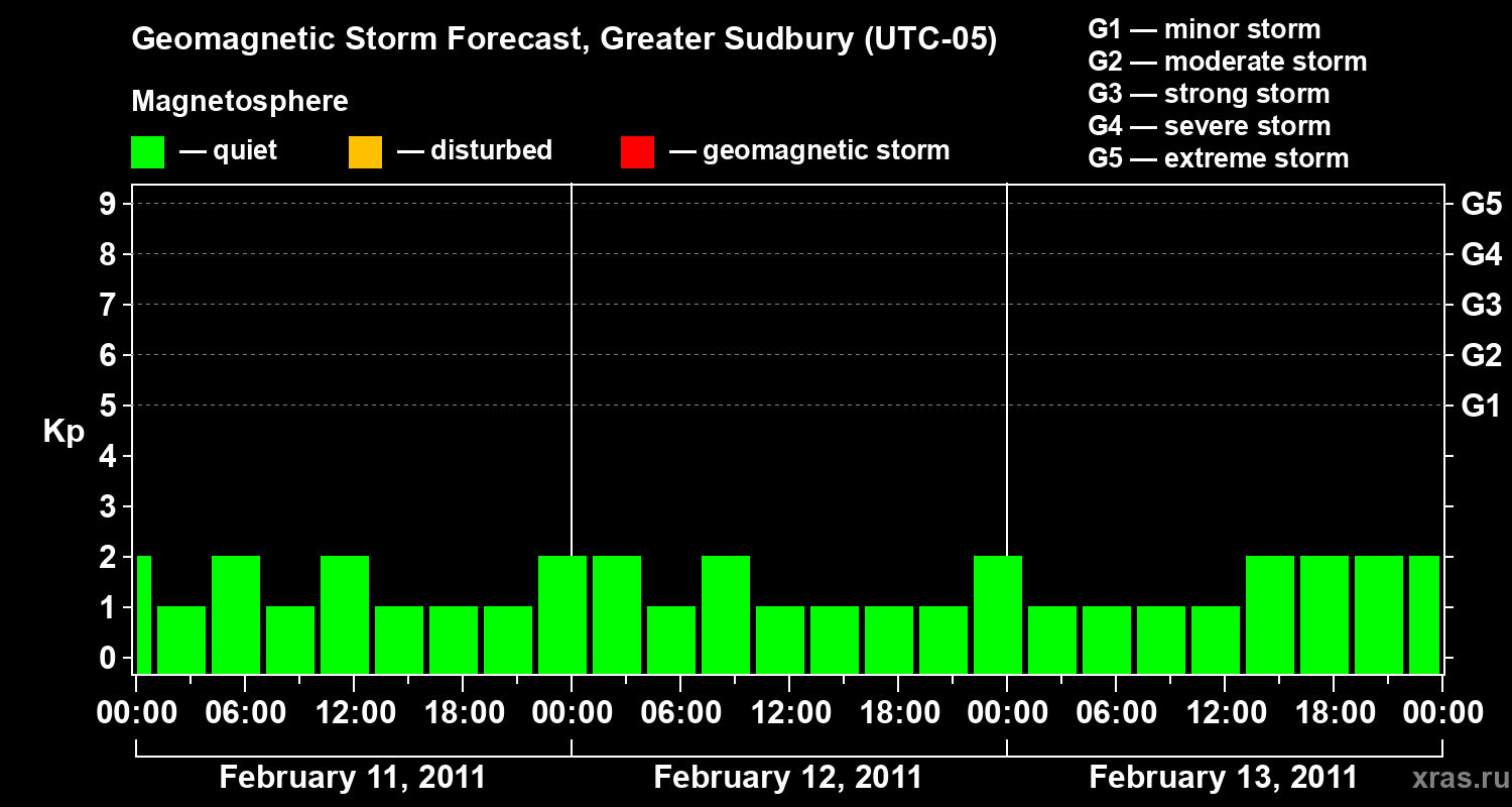Geomagnetic storm forecast in Greater Sudbury for Feb 11, 2011