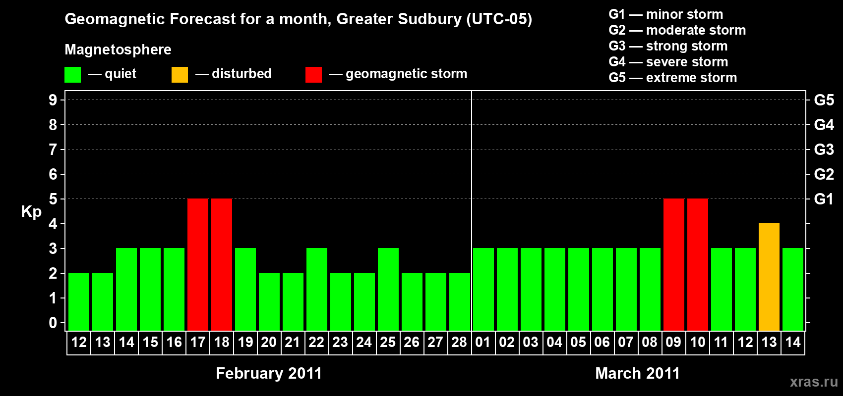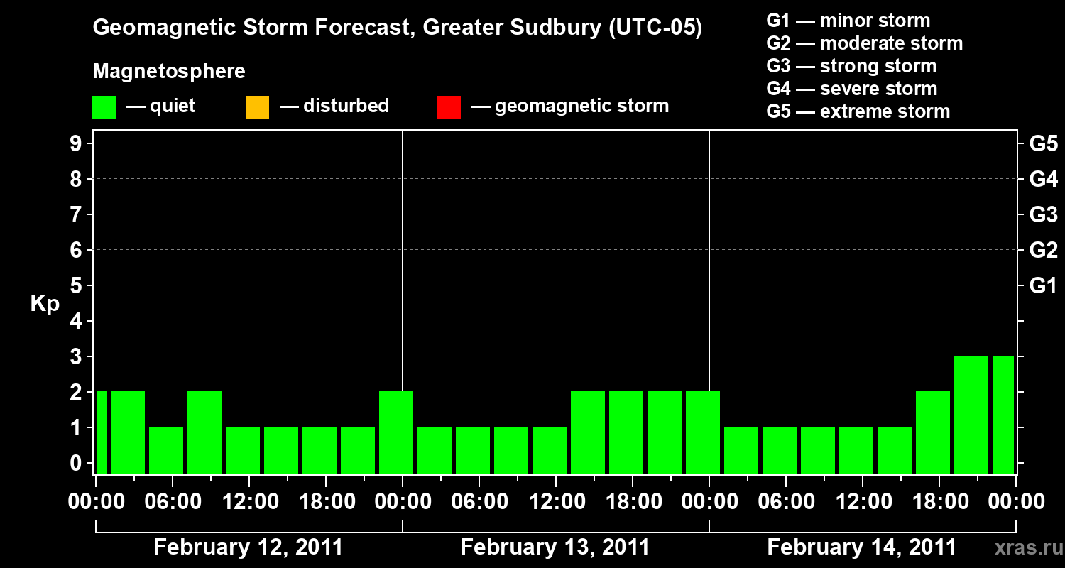 Geomagnetic storm forecast in Greater Sudbury for Feb 12, 2011