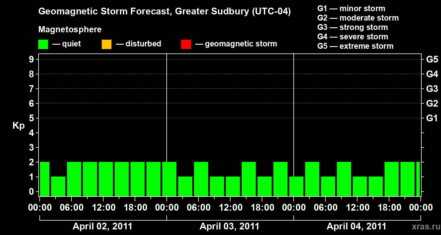 Geomagnetic storm forecast in Greater Sudbury for Apr 02, 2011