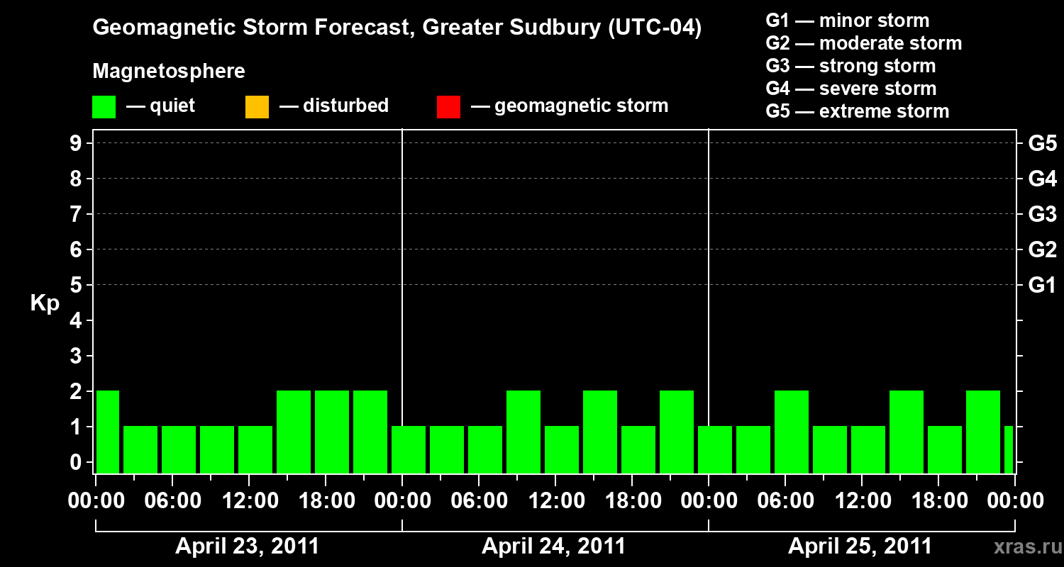 Geomagnetic storm forecast in Greater Sudbury for Apr 23, 2011