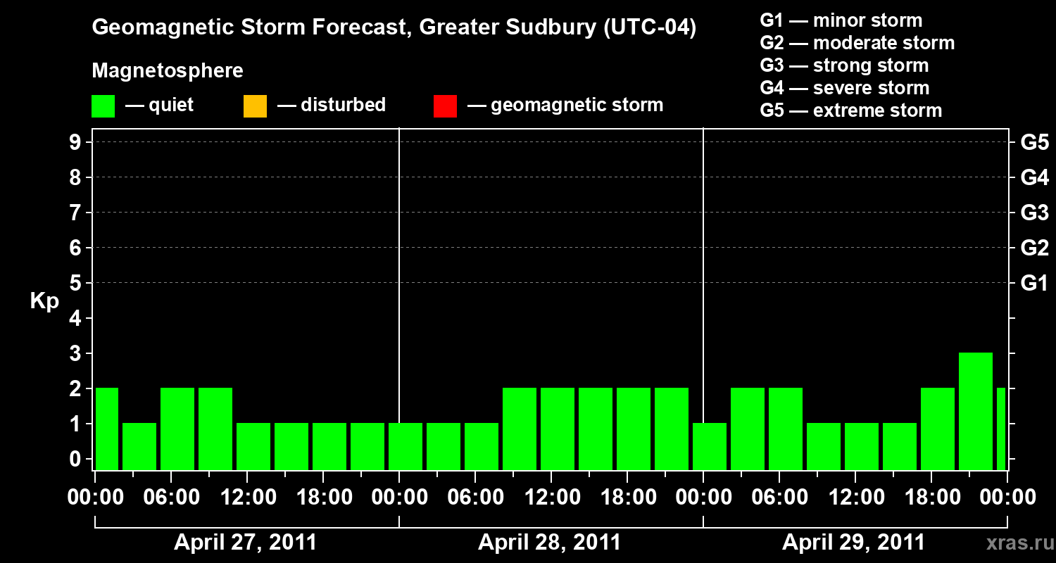 Geomagnetic storm forecast in Greater Sudbury for Apr 27, 2011