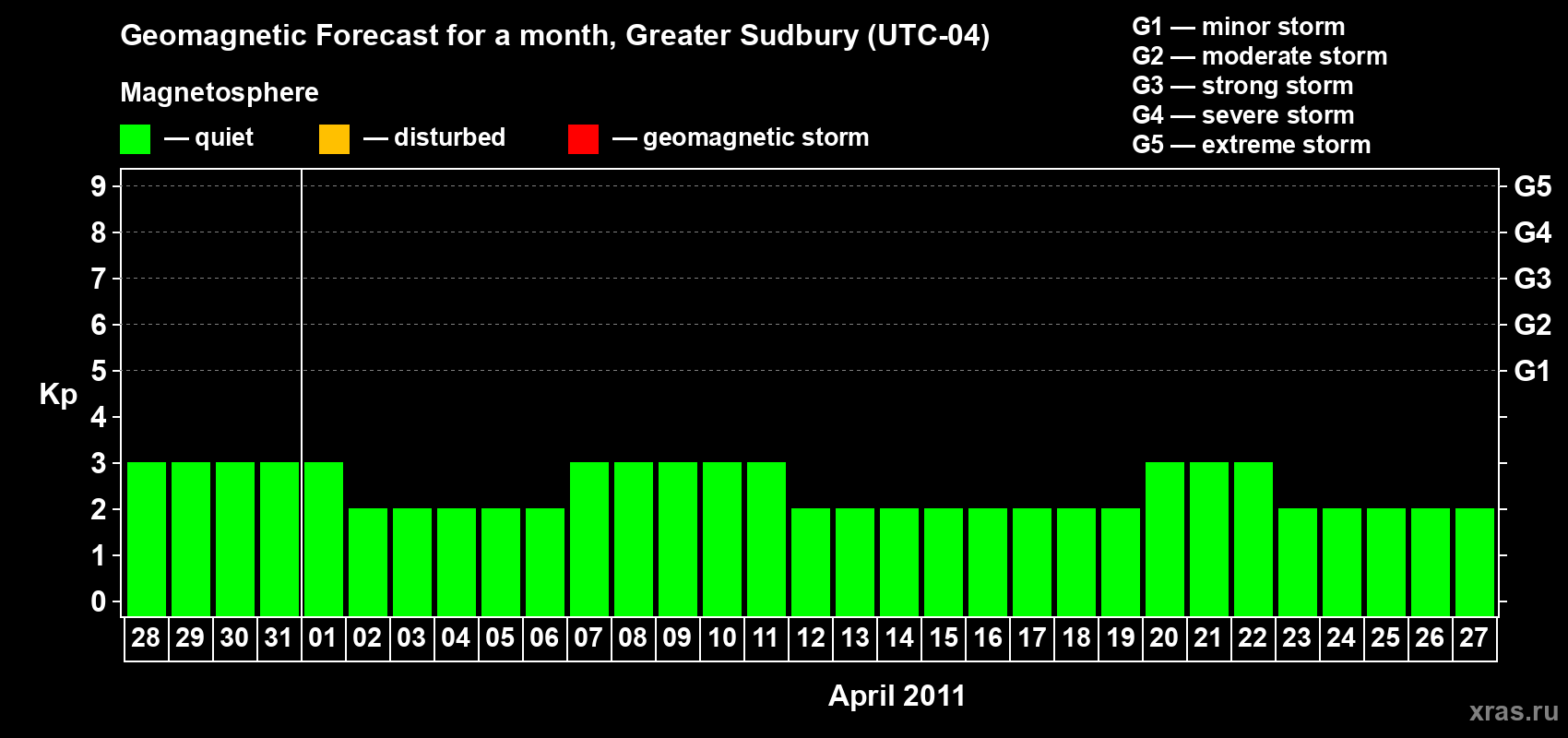 Geomagnetic activity forecast in Greater Sudbury — Mar 28, 2011