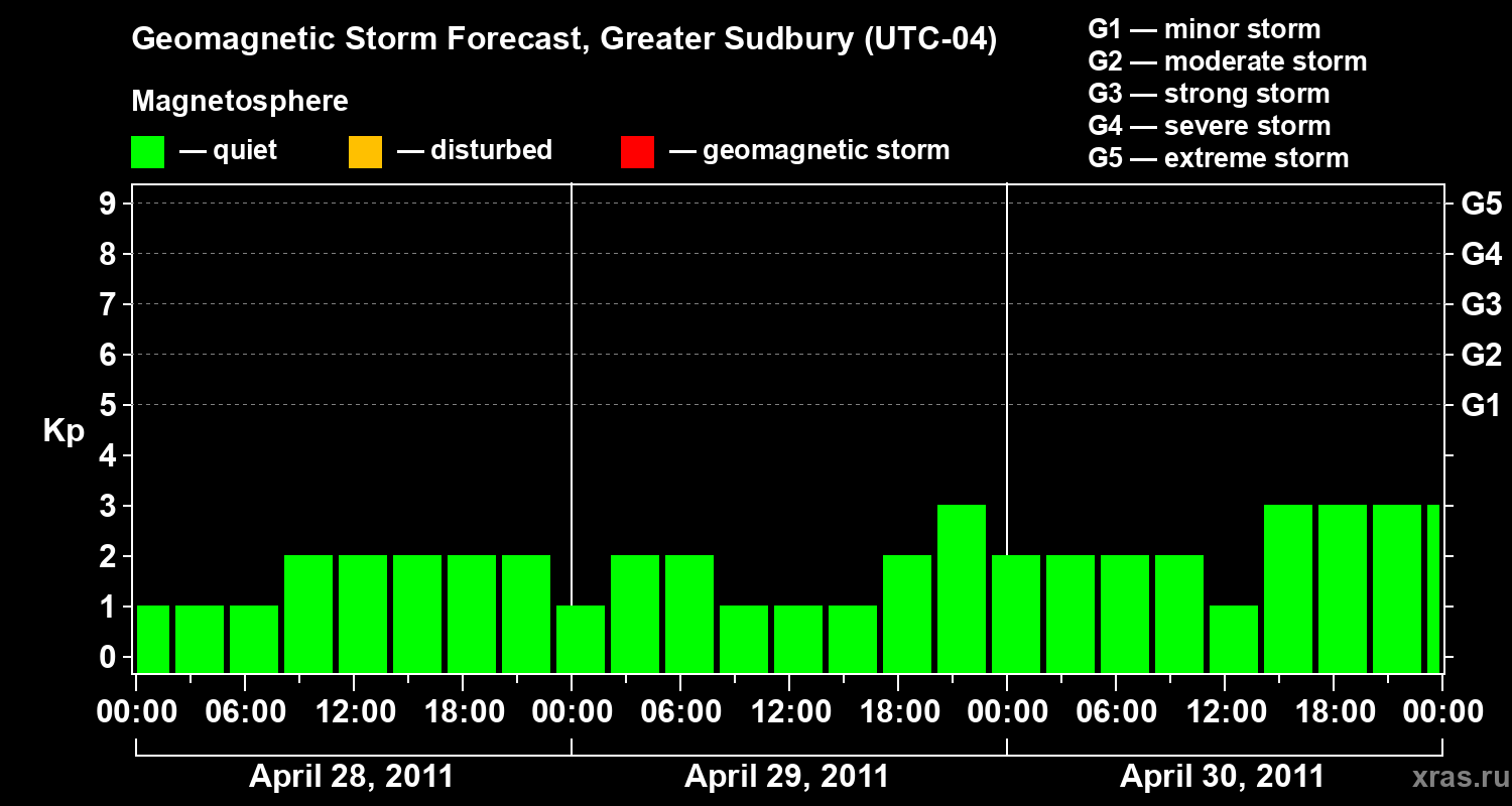 Geomagnetic storm forecast in Greater Sudbury for Apr 28, 2011