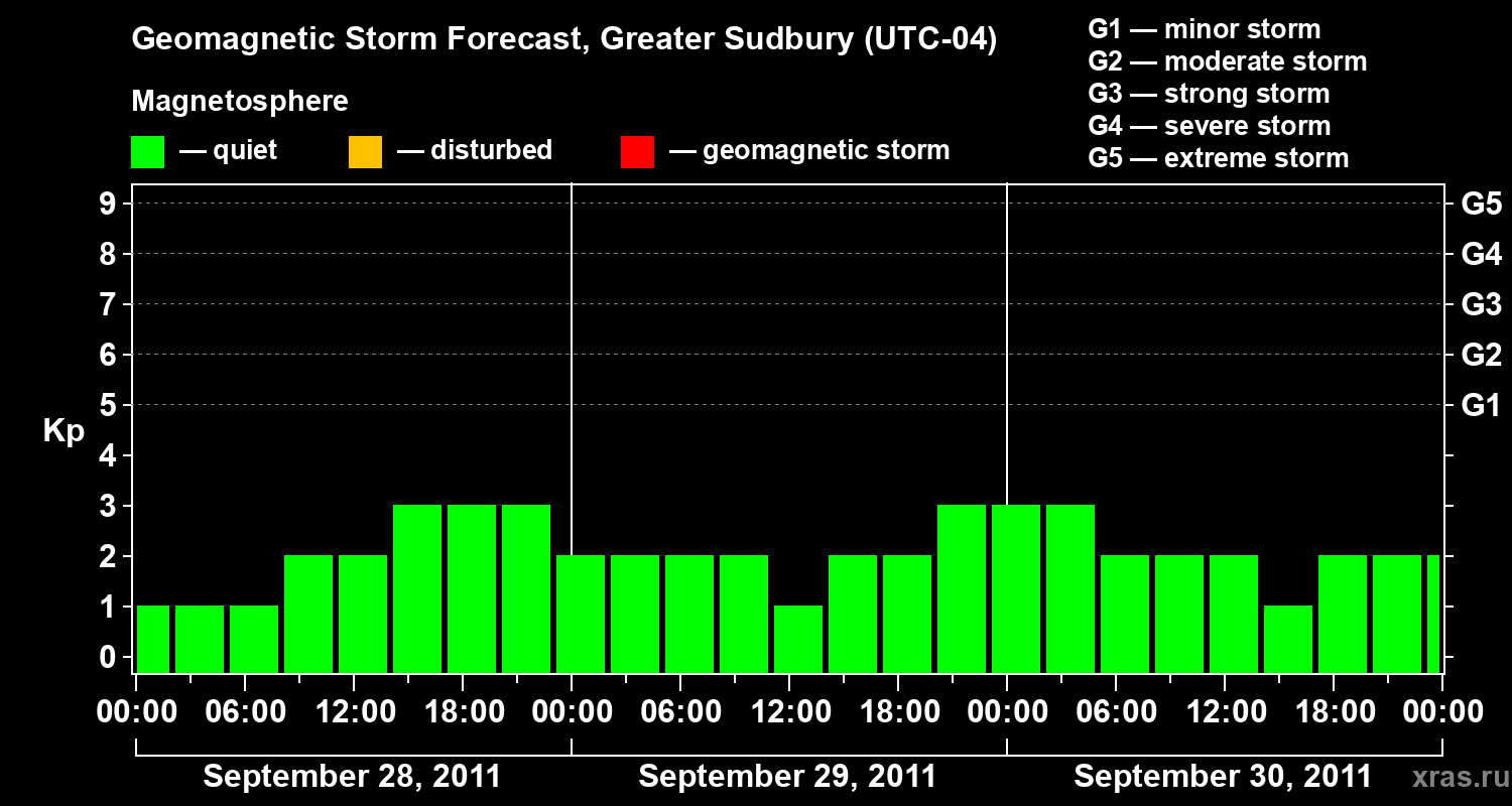 Geomagnetic storm forecast in Greater Sudbury for Sep 28, 2011