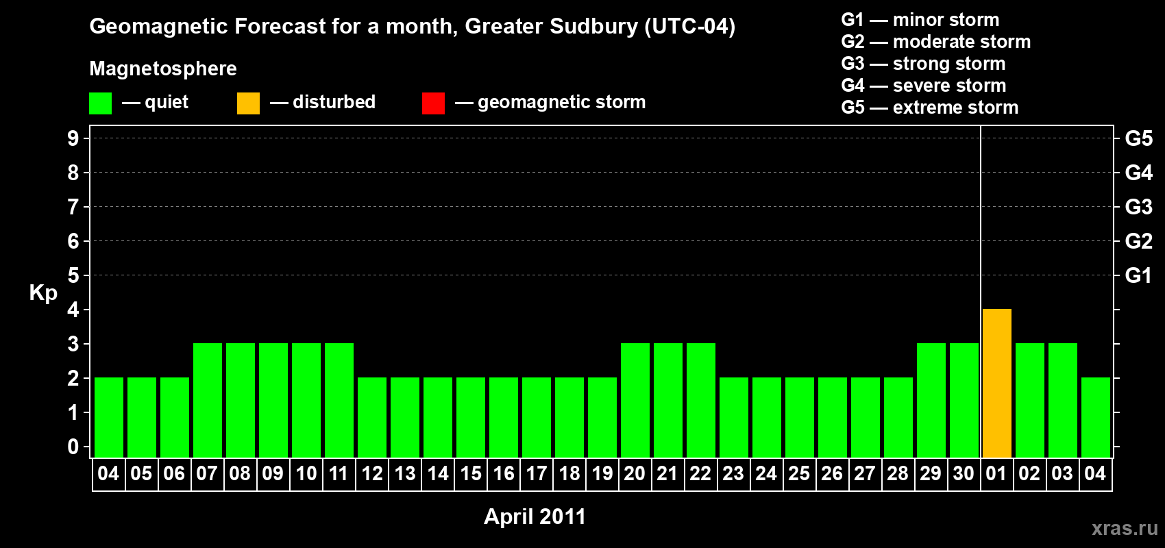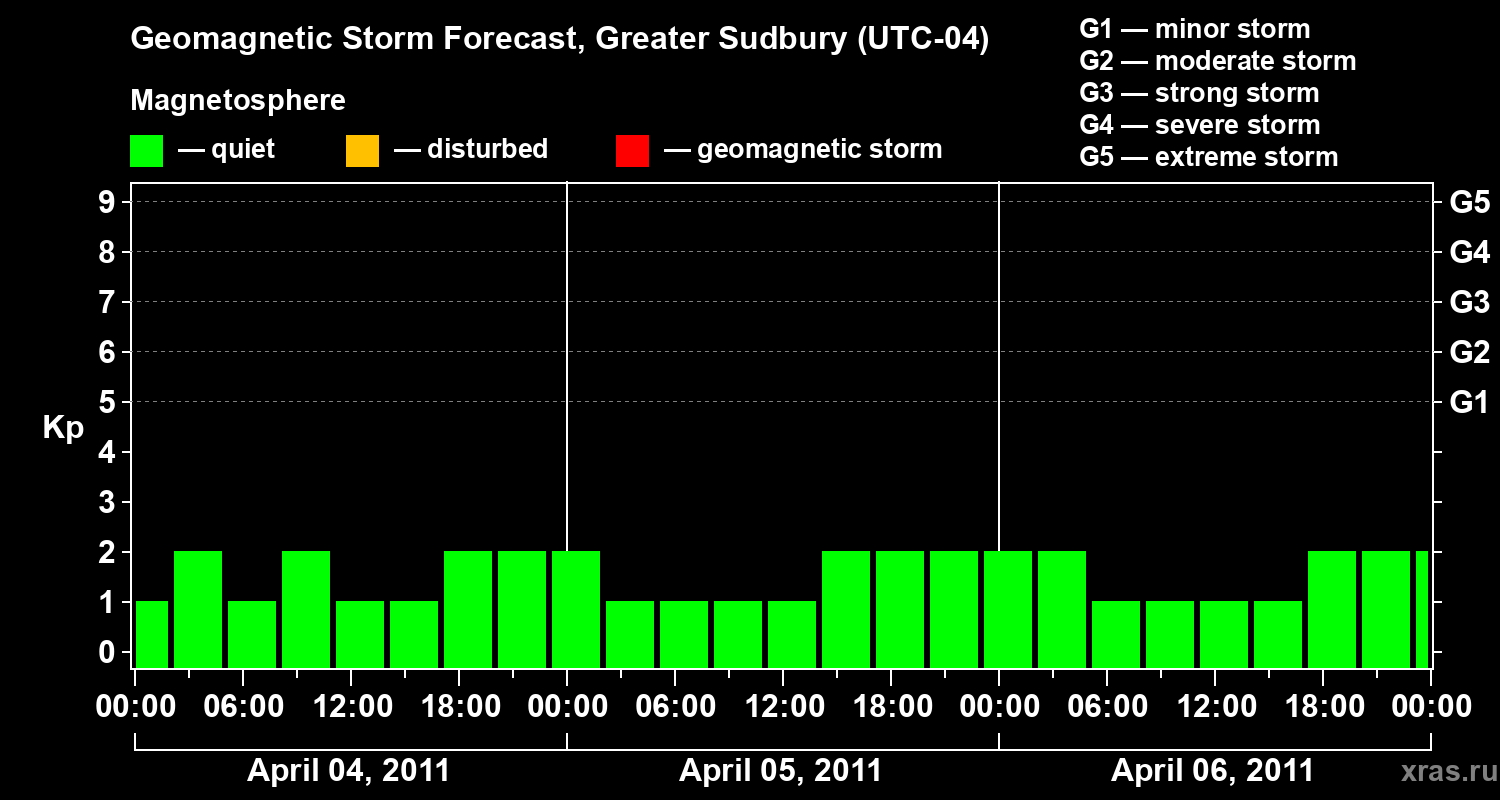 Geomagnetic storm forecast in Greater Sudbury for Apr 04, 2011