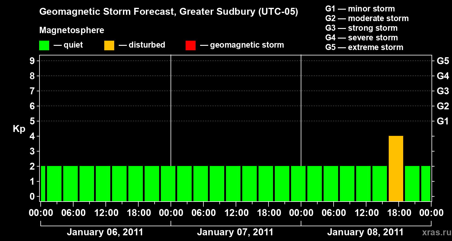 Geomagnetic storm forecast in Greater Sudbury for Jan 06, 2011