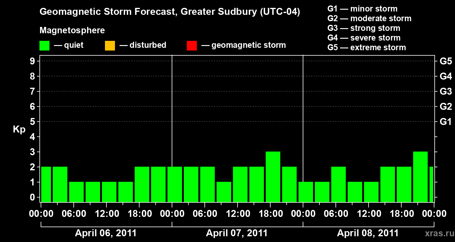 Geomagnetic storm forecast in Greater Sudbury for Apr 06, 2011