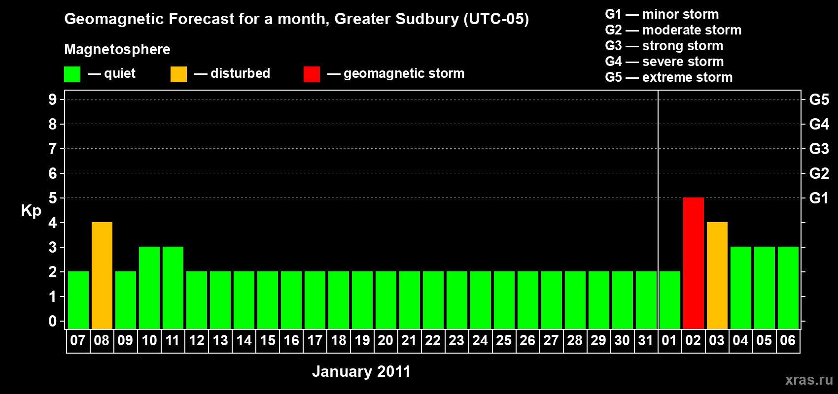 Geomagnetic storm forecast in Greater Sudbury for Jan 07, 2011