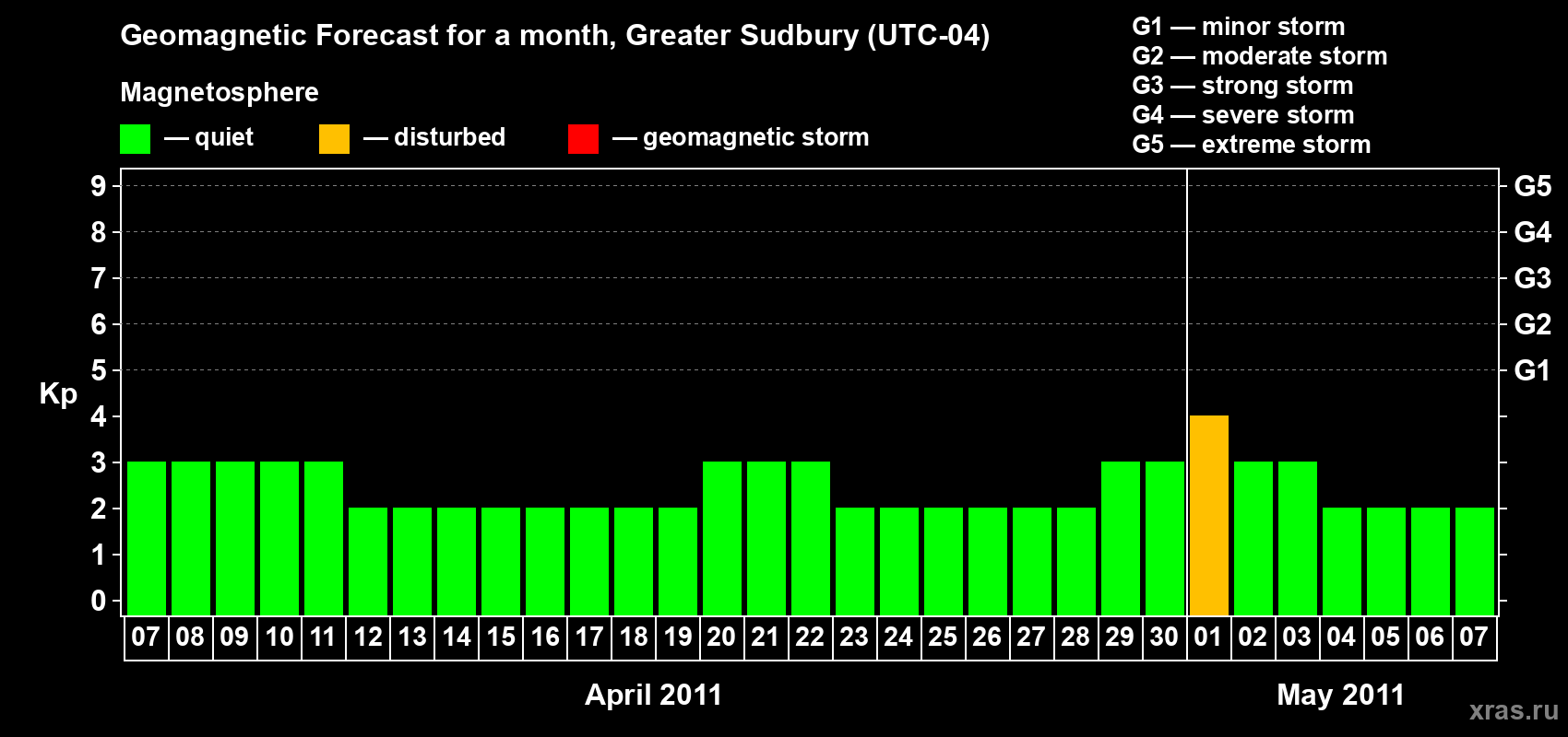 Geomagnetic storm forecast in Greater Sudbury for Apr 07, 2011