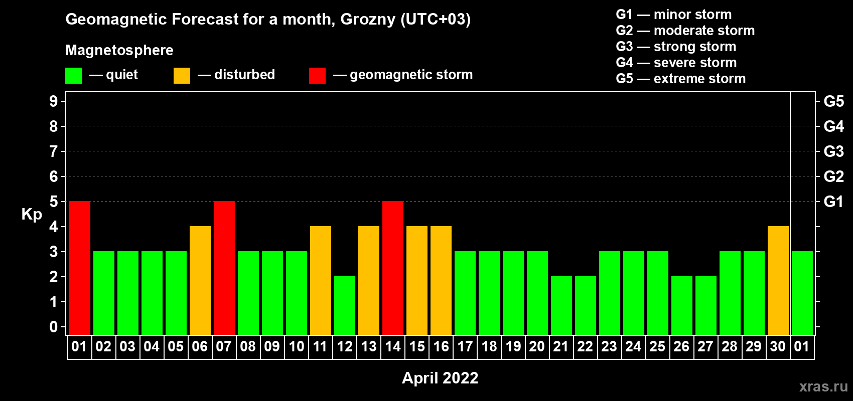 Geomagnetic storm forecast in Grozny for Apr 01, 2022