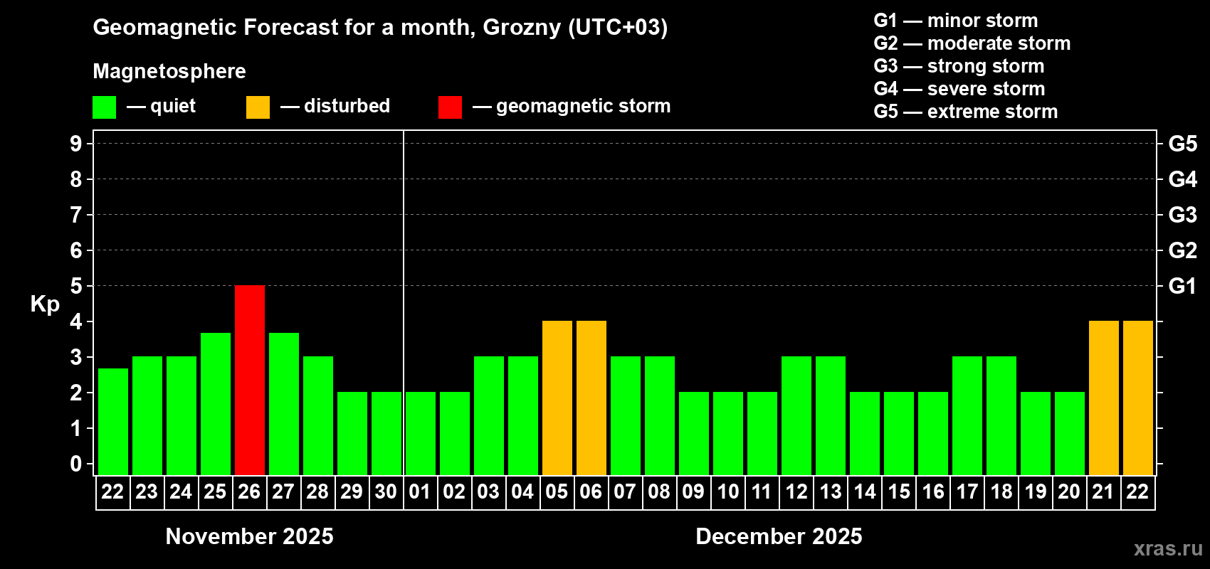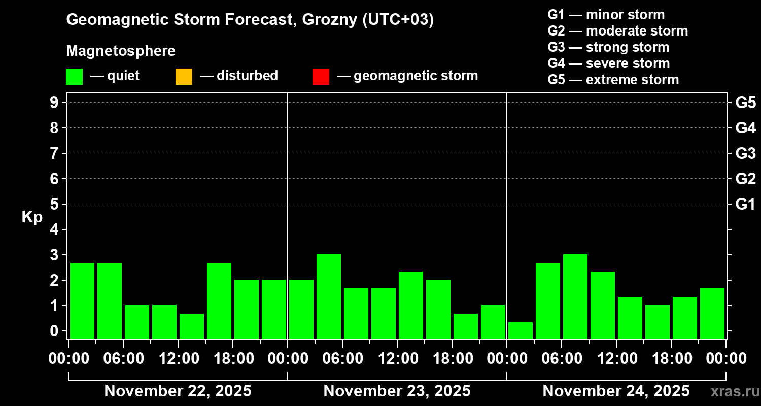 Geomagnetic storm forecast in Grozny for Nov 22, 2025