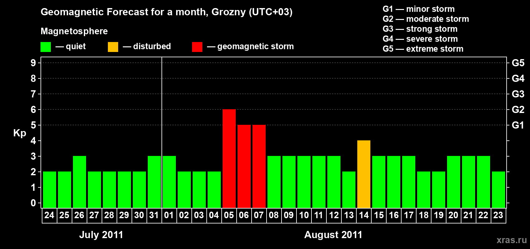 Geomagnetic storm forecast in Grozny for Jul 24, 2011