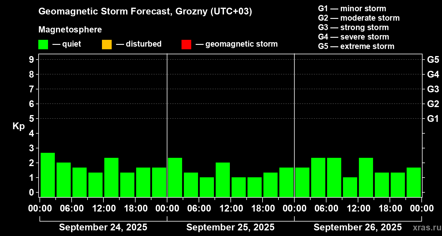 Geomagnetic storm forecast in Grozny for Sep 24, 2025