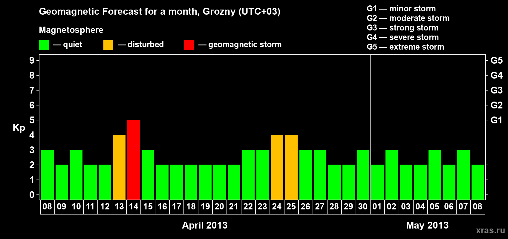 Geomagnetic storm forecast in Grozny for Apr 08, 2013