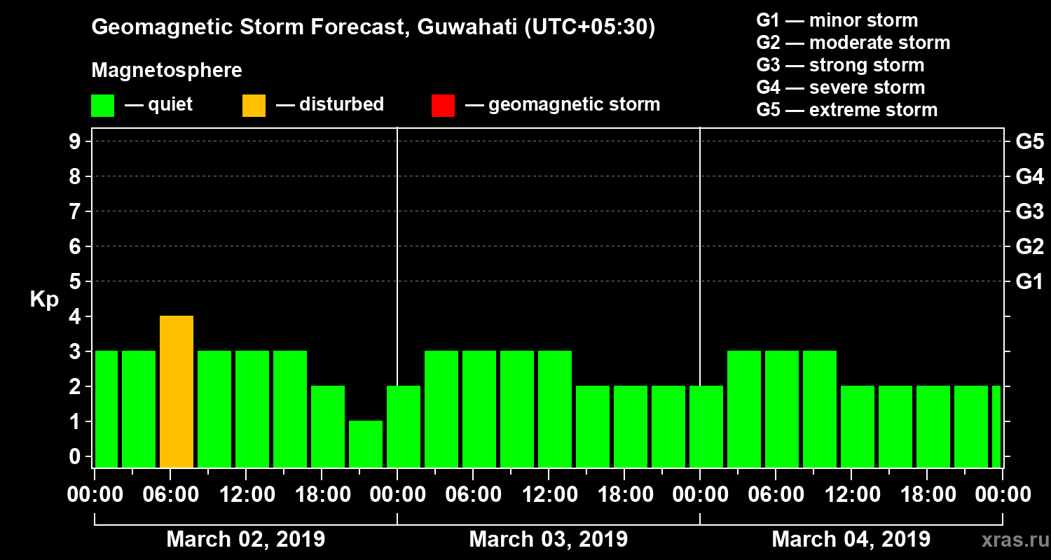 Geomagnetic activity forecast in Guwahati — Mar 02, 2019