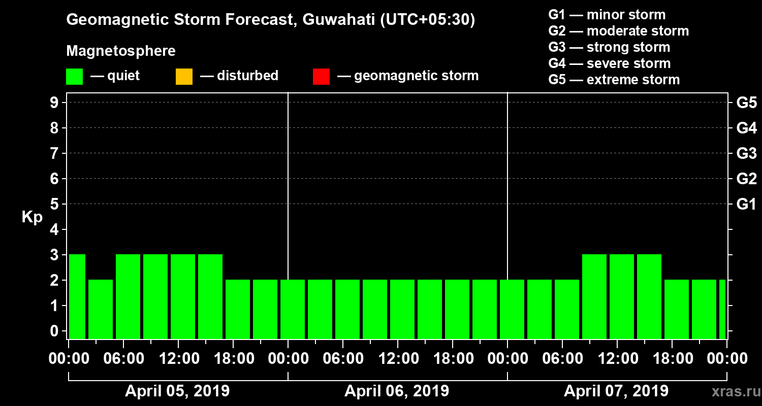 Geomagnetic storm forecast in Guwahati for Apr 05, 2019