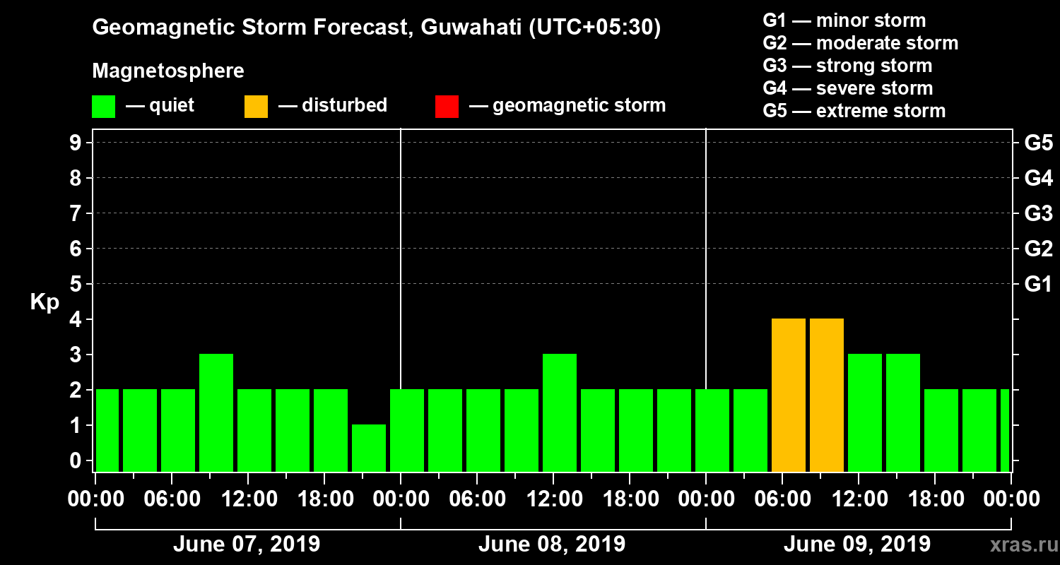 Geomagnetic storm forecast in Guwahati for Jun 07, 2019