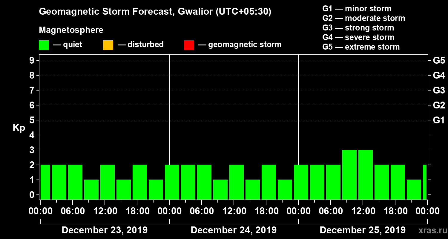 Geomagnetic storm forecast in Gwalior for Dec 23, 2019