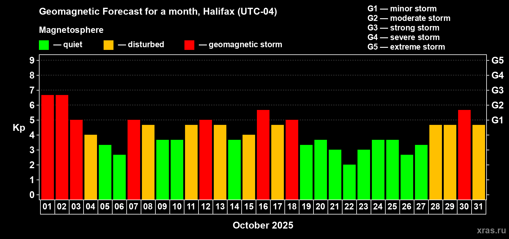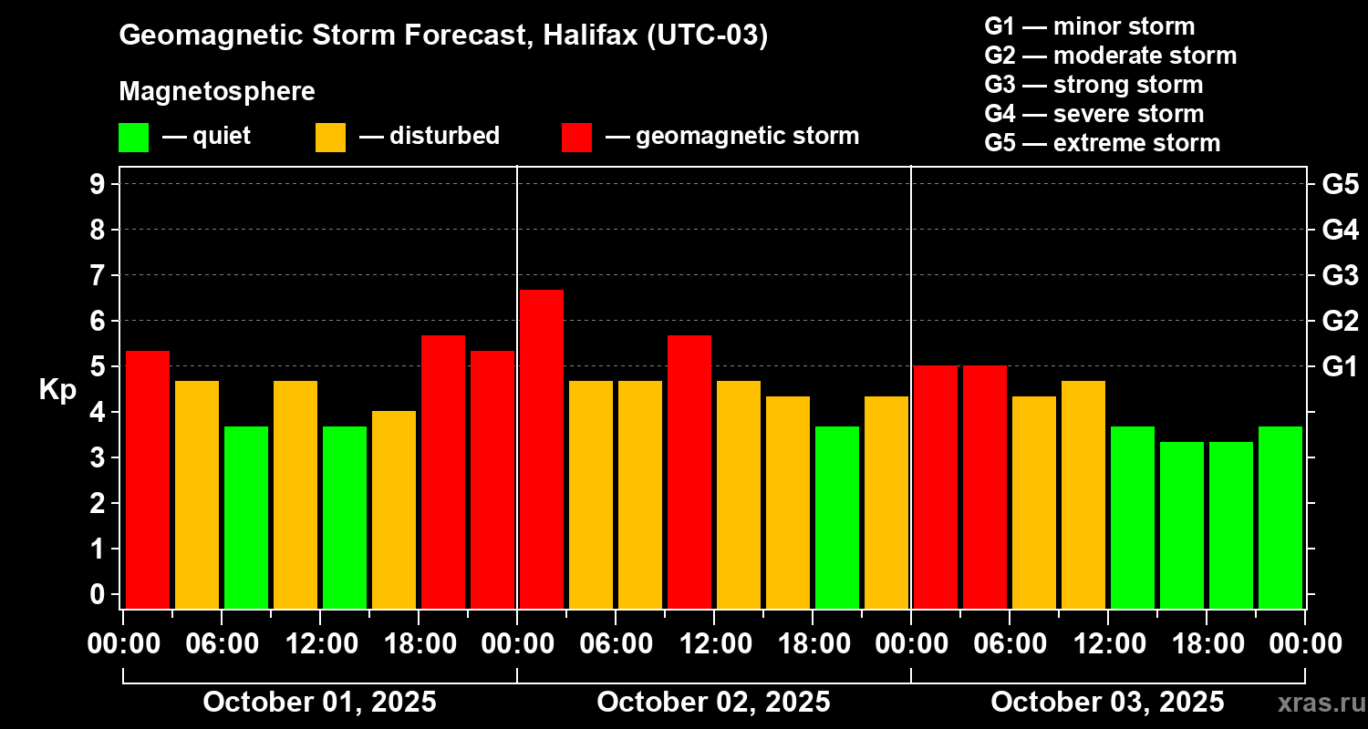 Geomagnetic storm forecast in Halifax for Oct 01, 2025