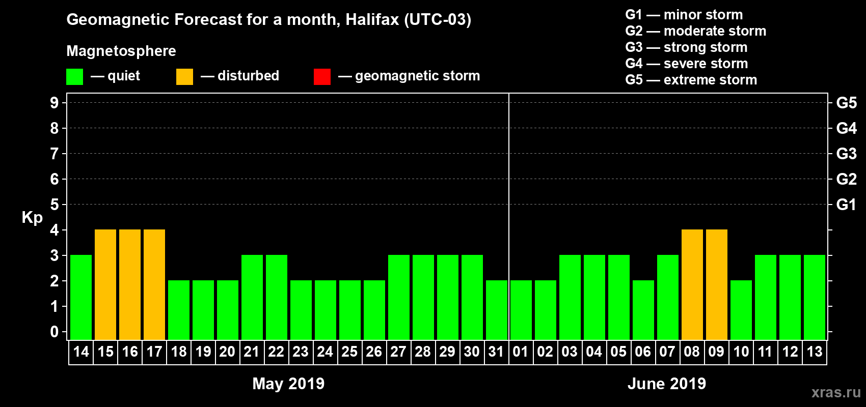 Geomagnetic storm forecast in Halifax for May 14, 2019