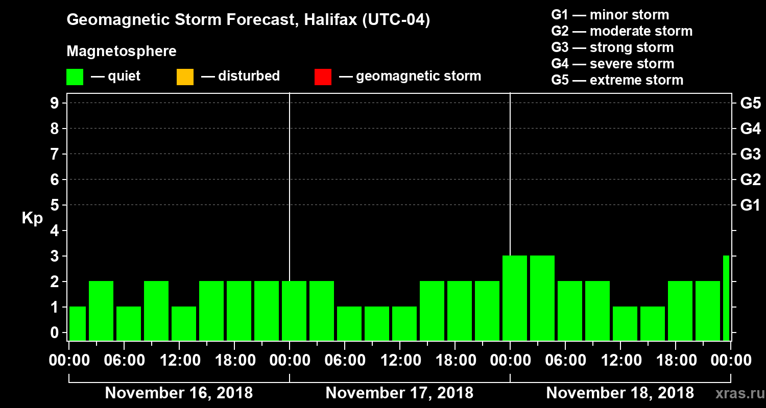 Geomagnetic storm forecast in Halifax for Nov 16, 2018