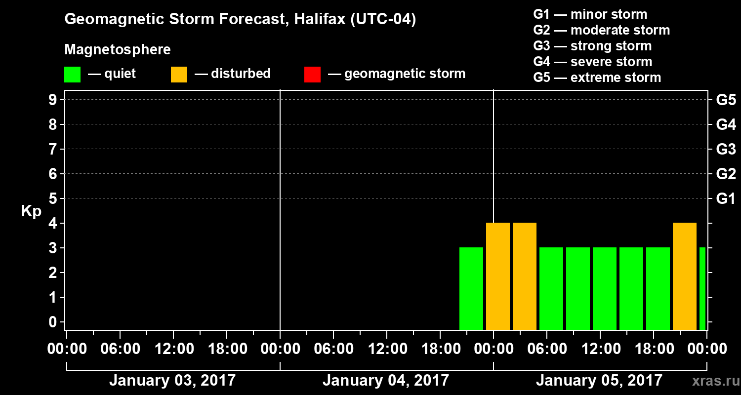 Geomagnetic storm forecast in Halifax for Jan 03, 2017