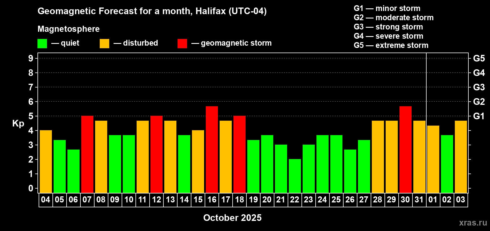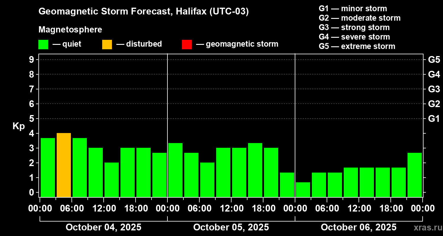 Geomagnetic storm forecast in Halifax for Oct 04, 2025