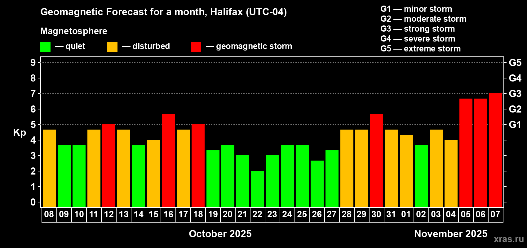Geomagnetic storm forecast in Halifax for Oct 08, 2025
