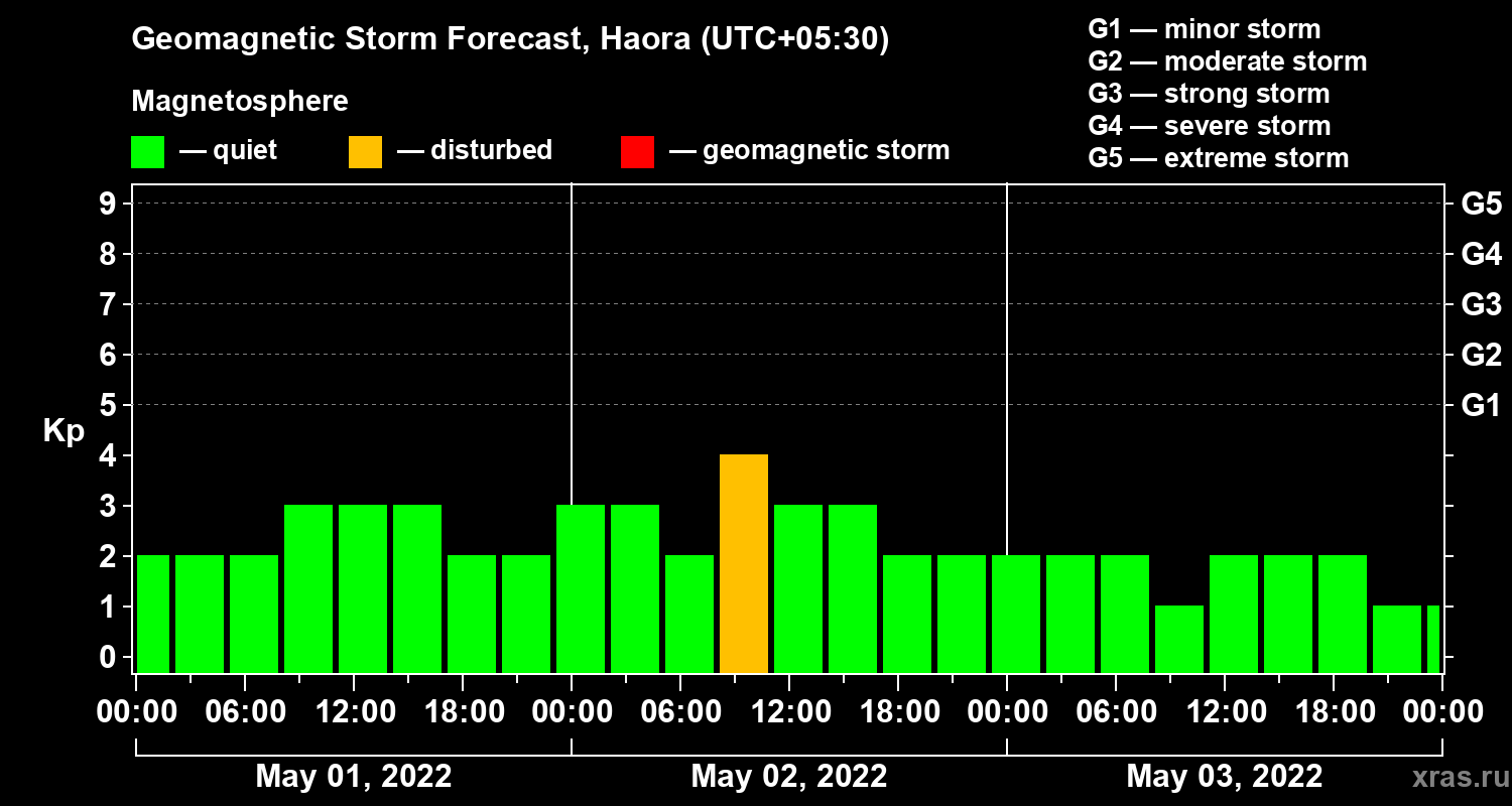 Geomagnetic storm forecast in Haora for May 01, 2022