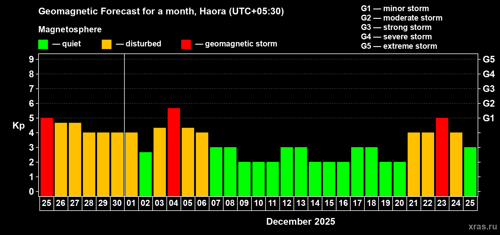 Geomagnetic storm forecast in Haora for Nov 25, 2025