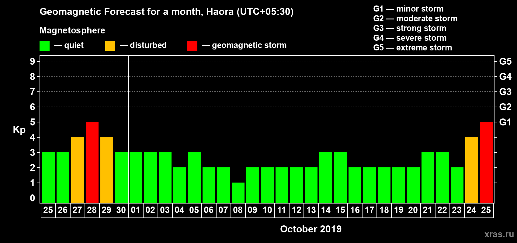 Geomagnetic storm forecast in Haora for Sep 25, 2019