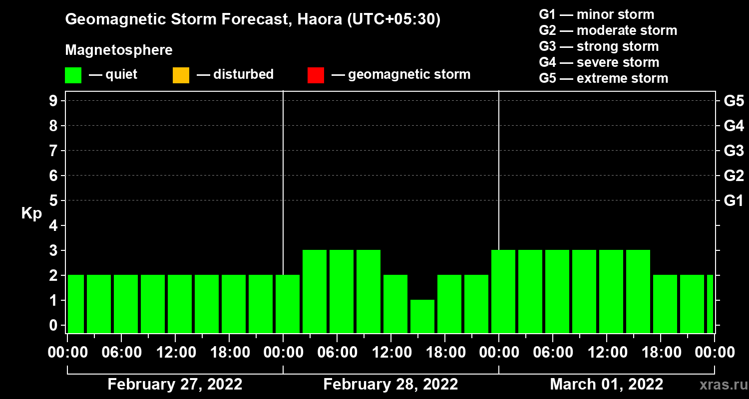 Geomagnetic storm forecast in Haora for Feb 27, 2022