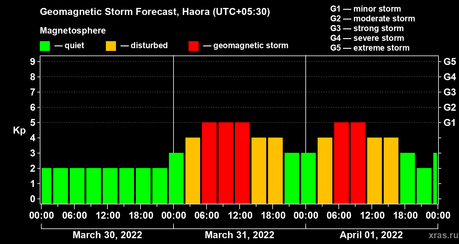 Geomagnetic storm forecast in Haora for Mar 30, 2022