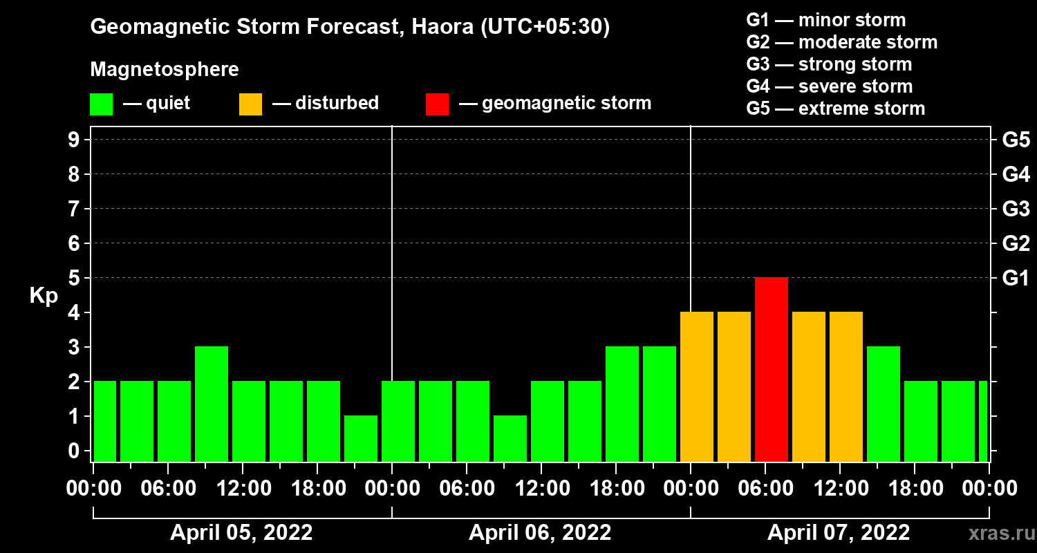 Geomagnetic storm forecast in Haora for Apr 05, 2022