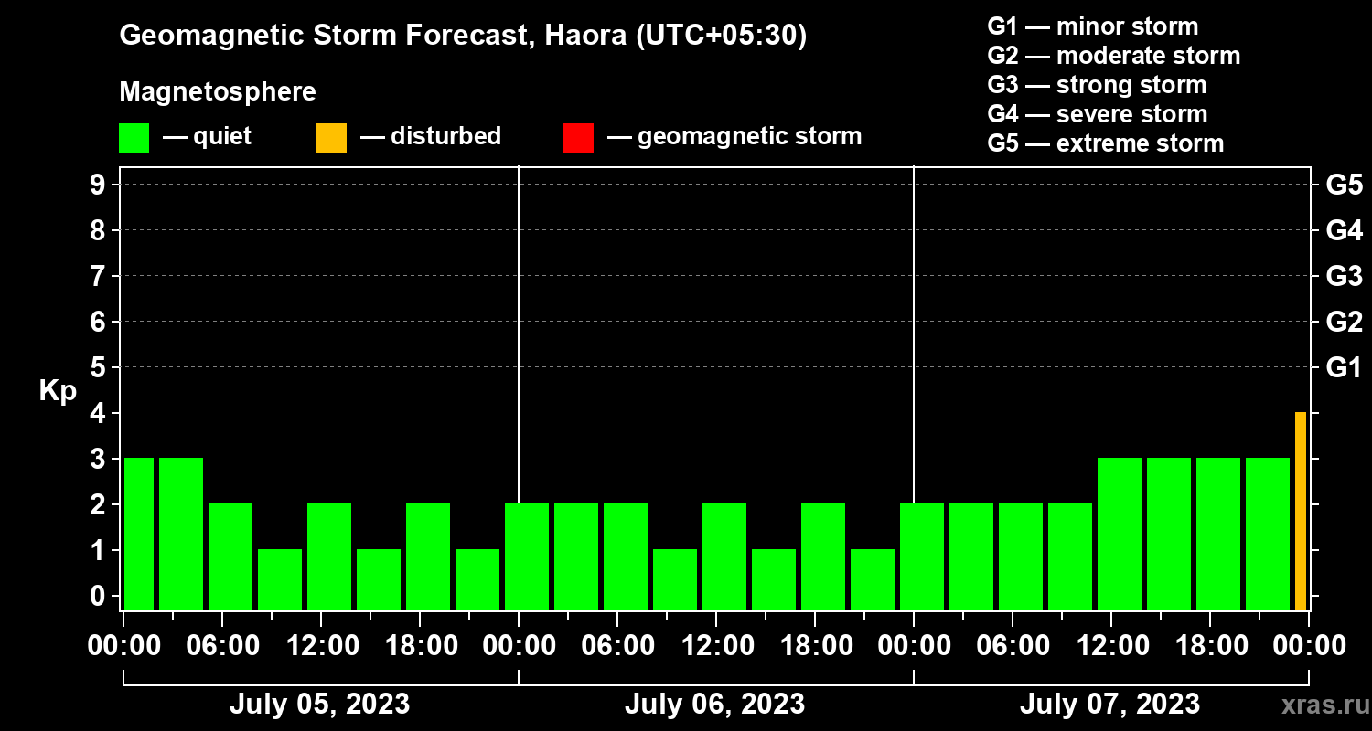 Geomagnetic storm forecast in Haora for Jul 05, 2023