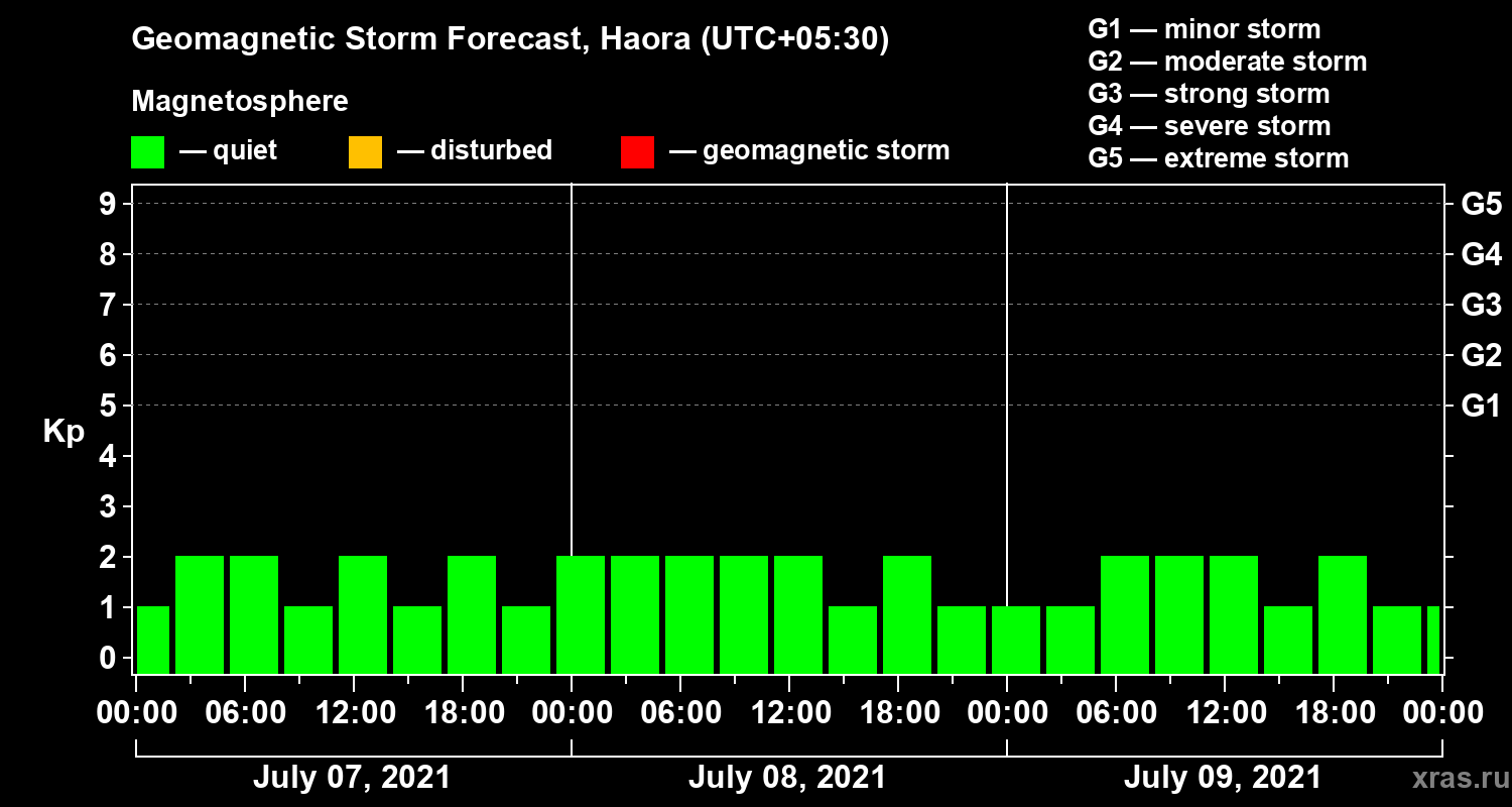 Geomagnetic storm forecast in Haora for Jul 07, 2021