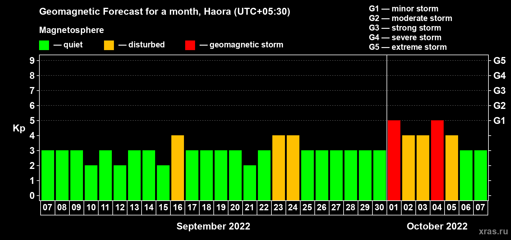 Geomagnetic storm forecast in Haora for Sep 07, 2022
