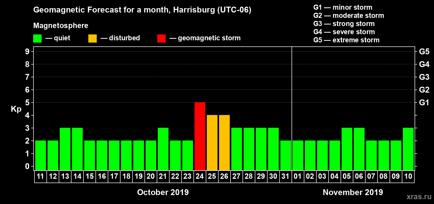 Geomagnetic storm forecast in Harrisburg for Oct 11, 2019