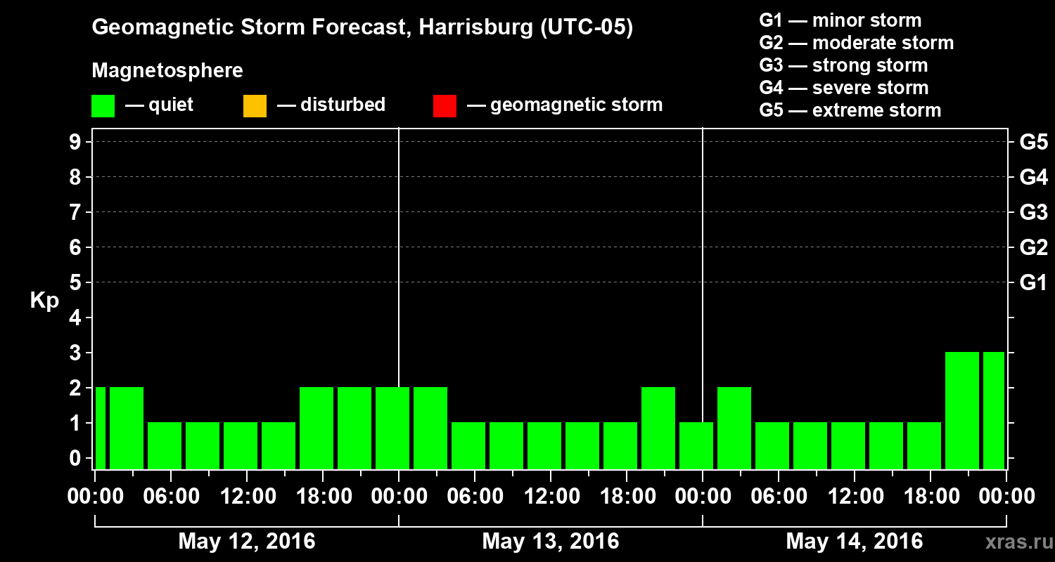 Geomagnetic storm forecast in Harrisburg for May 12, 2016