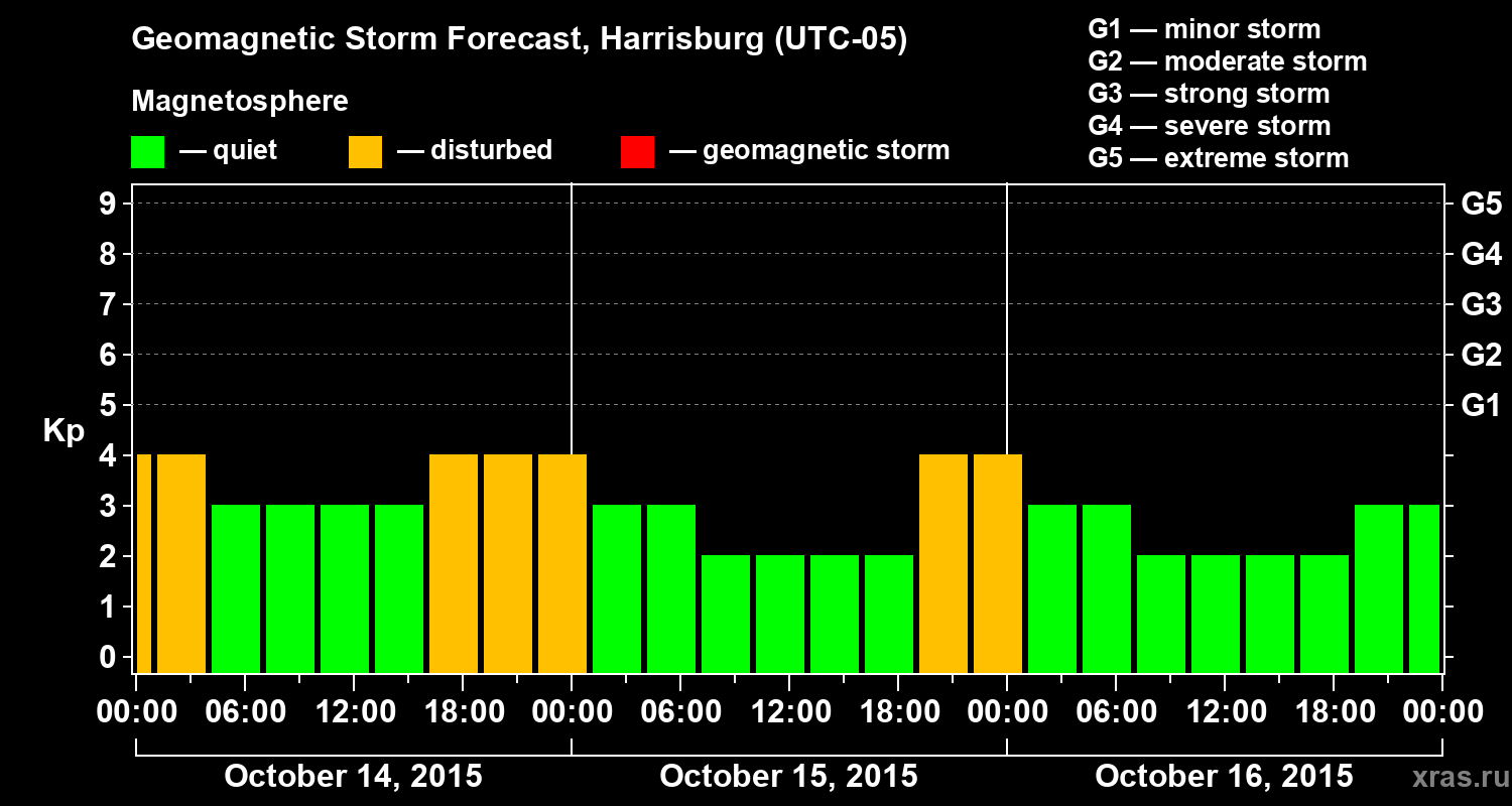 Geomagnetic storm forecast in Harrisburg for Oct 14, 2015