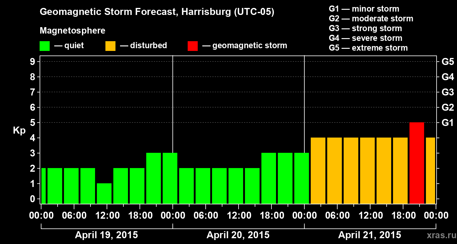Geomagnetic storm forecast in Harrisburg for Apr 19, 2015