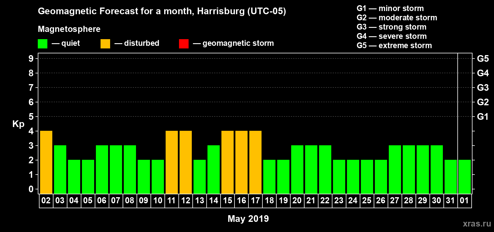 Geomagnetic storm forecast in Harrisburg for May 02, 2019