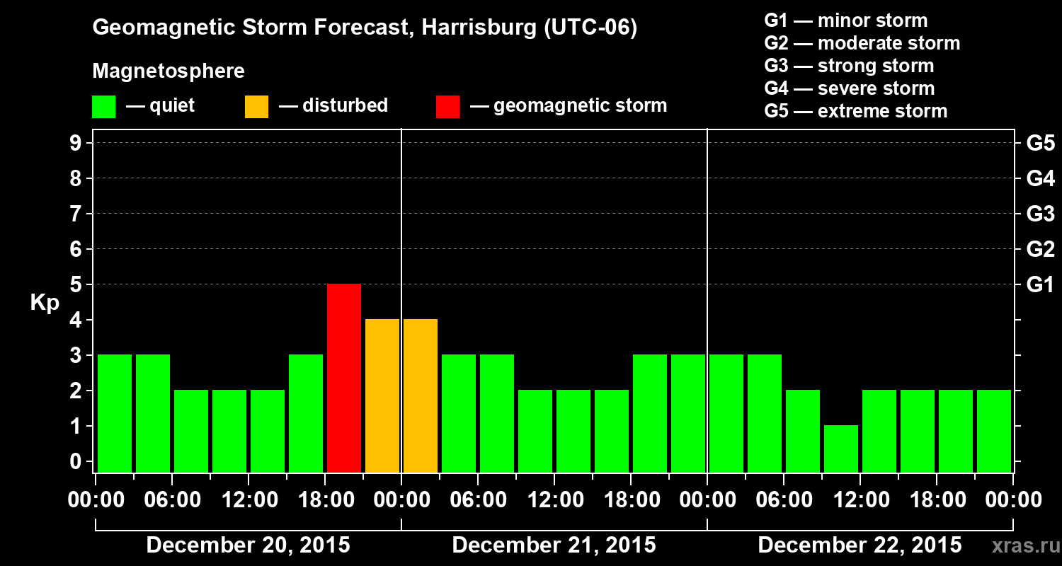 Geomagnetic storm forecast in Harrisburg for Dec 20, 2015
