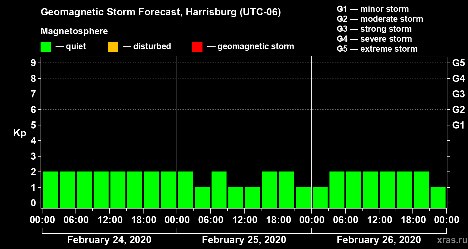 Geomagnetic storm forecast in Harrisburg for Feb 24, 2020